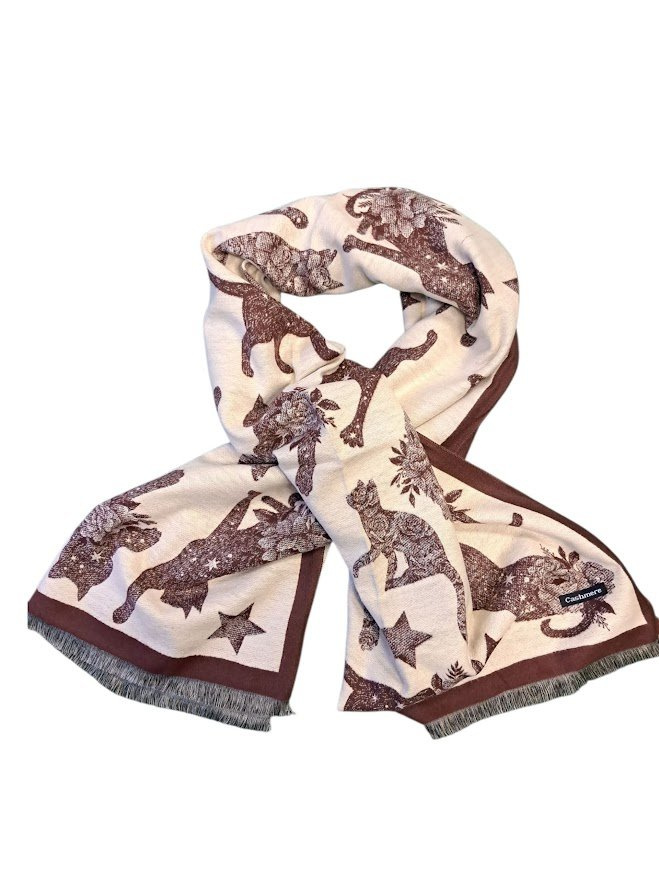 Elegantní dámská šála z jemné kašmírové směsi s originálním motivem koček potěší každou milovnici stylu i pohodlí. Díky rozměrům 180 × 65 cm se dá nosit na mnoho způsobů – kolem krku, přes ramena či jako lehký přehoz.