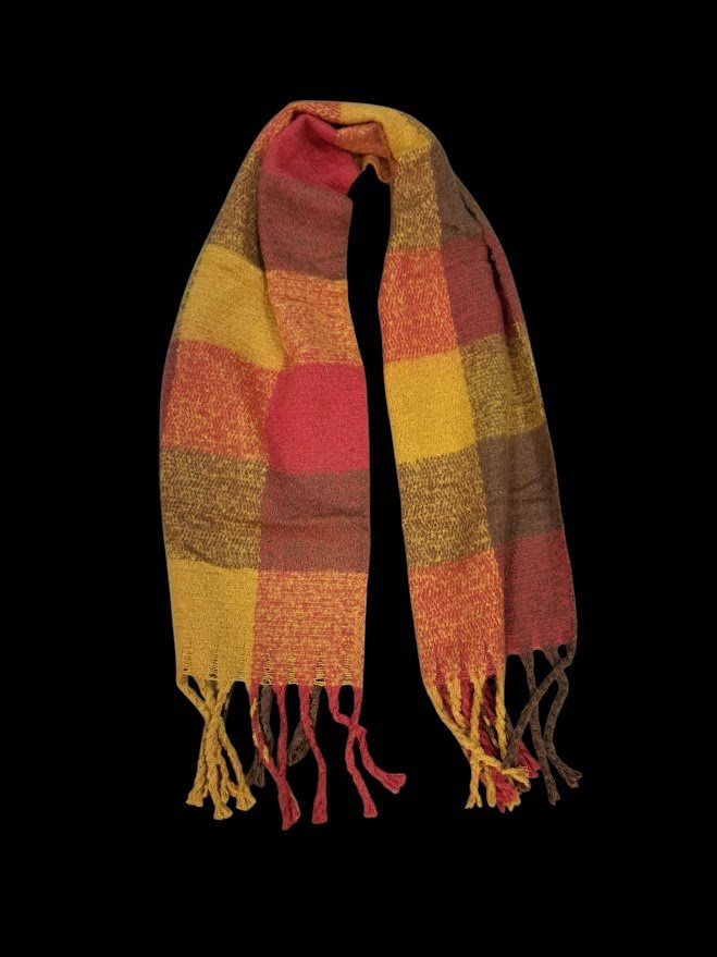 Stylová vlněná šála s třásněmi (45×170 cm) v kostkovaném motivu. Hřejivý materiál s 65% vlny, ideální jako módní doplněk pro podzim a zimu.