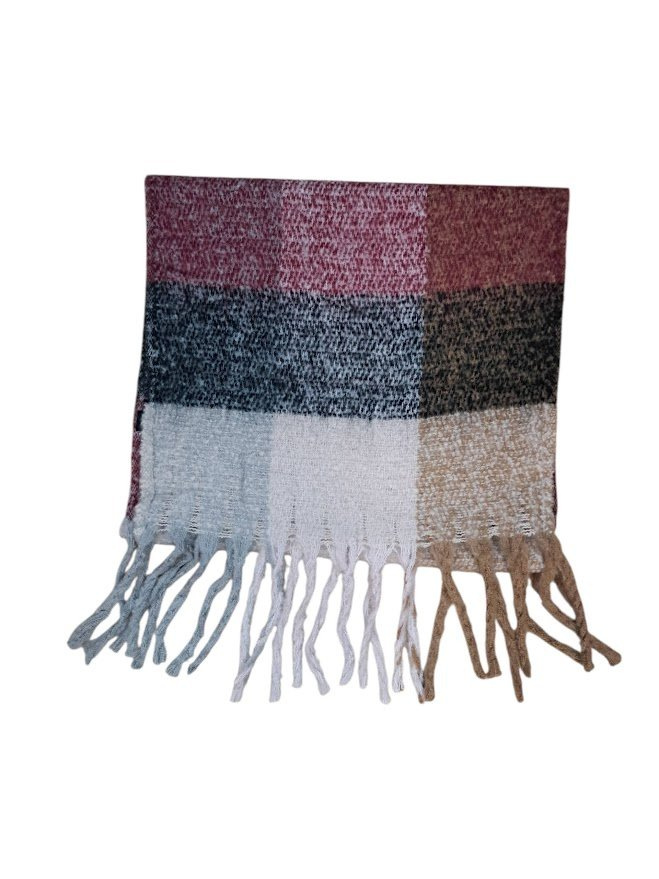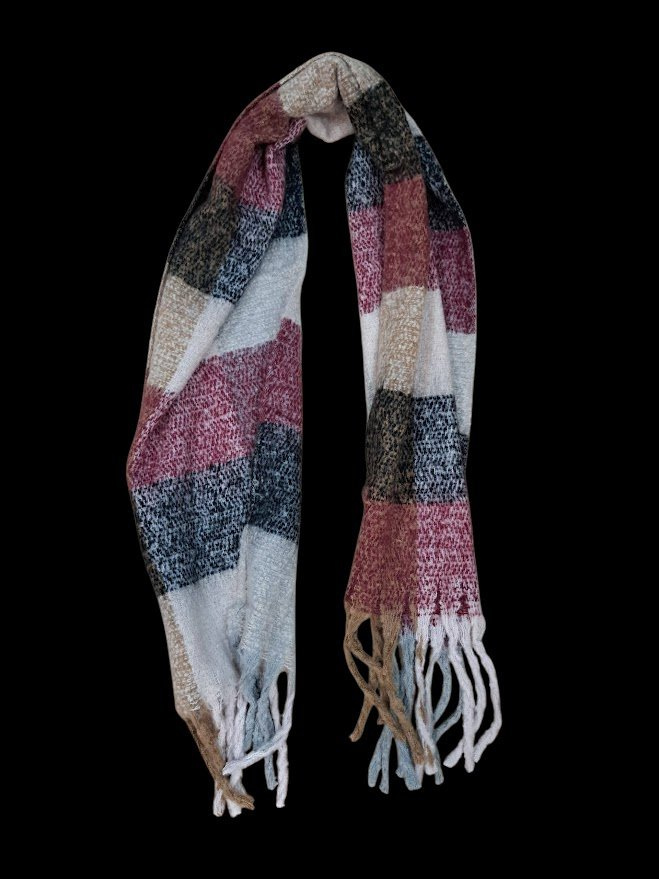 Stylová vlněná šála s třásněmi (45×170 cm) v kostkovaném motivu. Hřejivý materiál s 65% vlny, ideální jako módní doplněk pro podzim a zimu.
