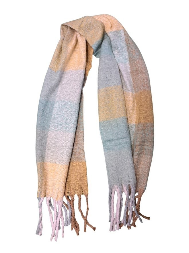 Stylová vlněná šála s třásněmi (45×170 cm) v kostkovaném motivu. Hřejivý materiál s 65% vlny, ideální jako módní doplněk pro podzim a zimu.