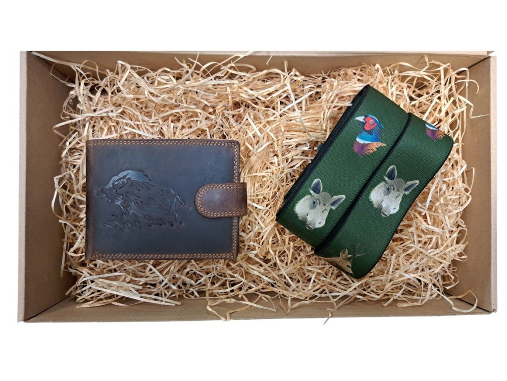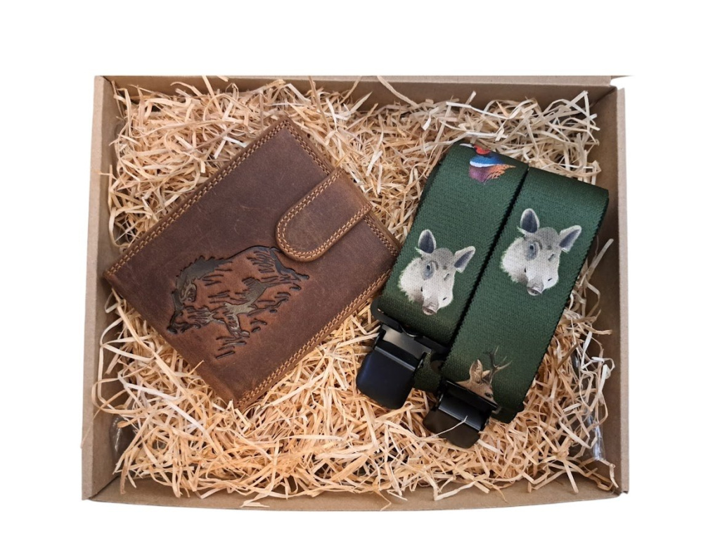 Dárkový set pro muže - Kožená peněženka a kšandy Myslivec