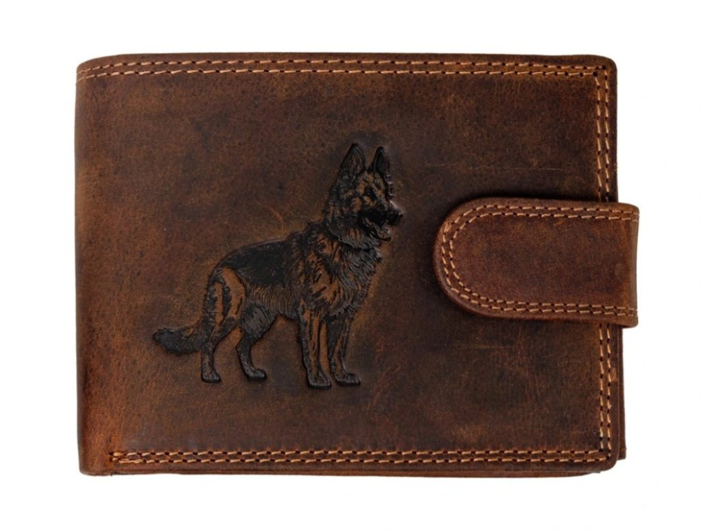 Kožená pánská peněženka se zapínáním motiv německý ovčák