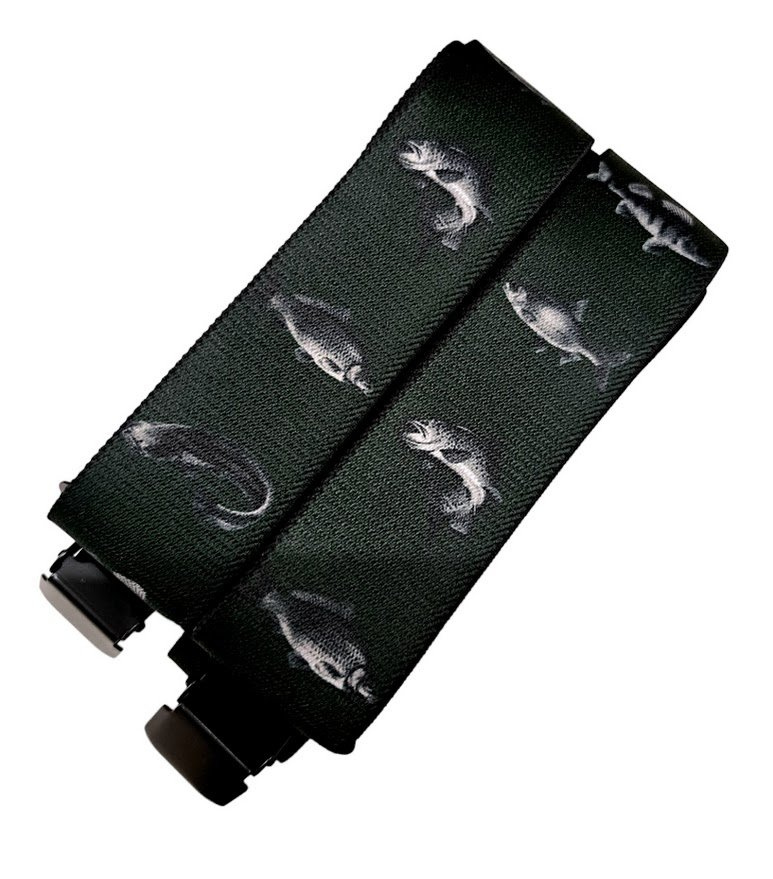 Kvalitní pánské šle s motivem ryb v tmavě zelené barvě