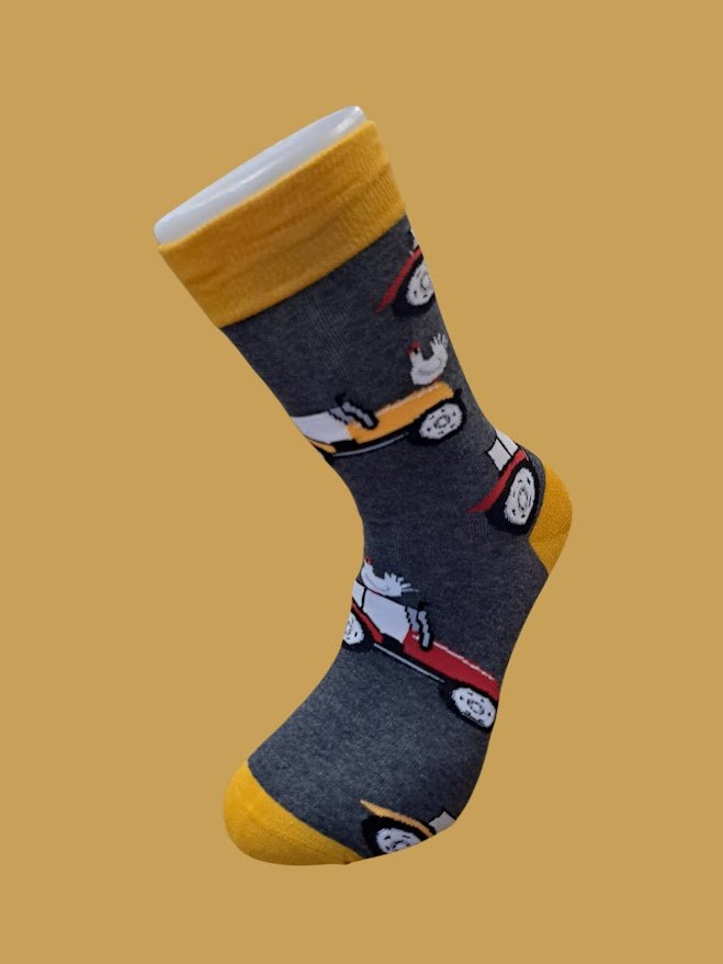 Naše veselé ponožky s motivem traktoru jsou ideální volbou pro všechny, kdo chtějí rozzářit svůj outfit. Díky kvalitnímu materiálu jsou pohodlné na nošení po celý den a hravý design potěší malé i velké.